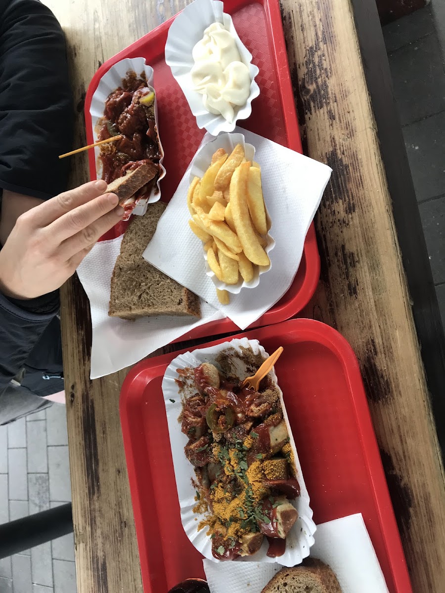 I always come here when I'm in Germany. It's one of the best Currywursts (and I lived in Berlin for a while) and definitely the best bread (there's at least one slice at a side with your order) you can get. What should you order: Snacker Combi Rindswurst Grade B or B+ Jambalaya Sauce Fries with Mayo and raw onions Spezi That's the GOAT!